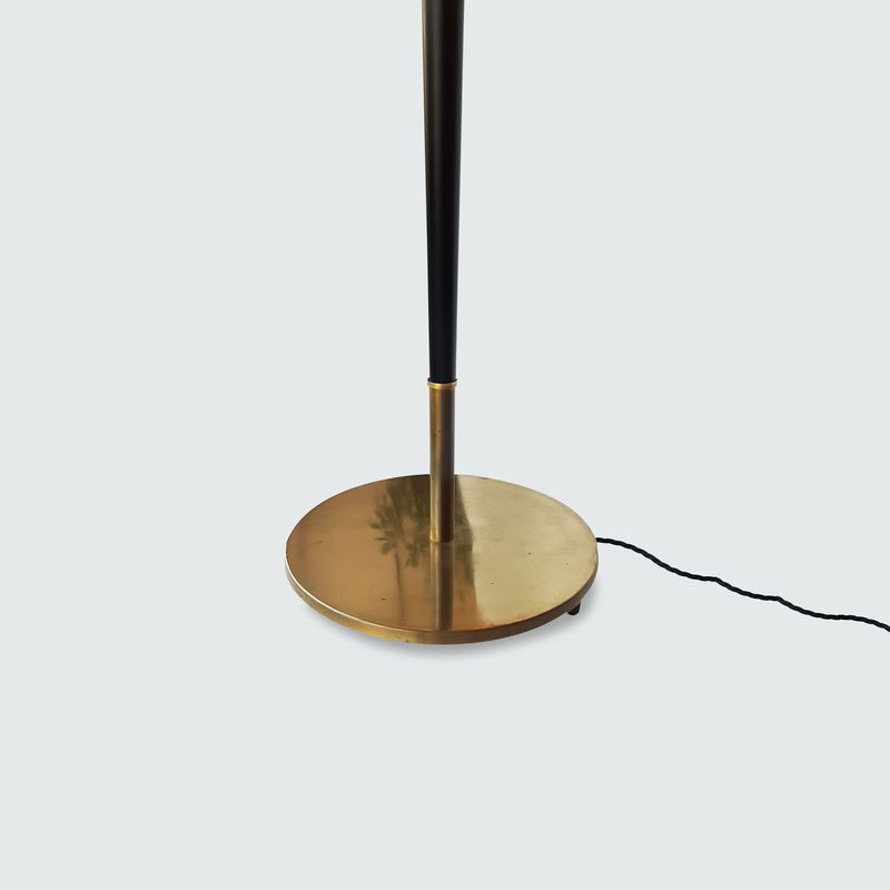 Polished brass base and black lacquered metal and teak. Denmark, 1960s.