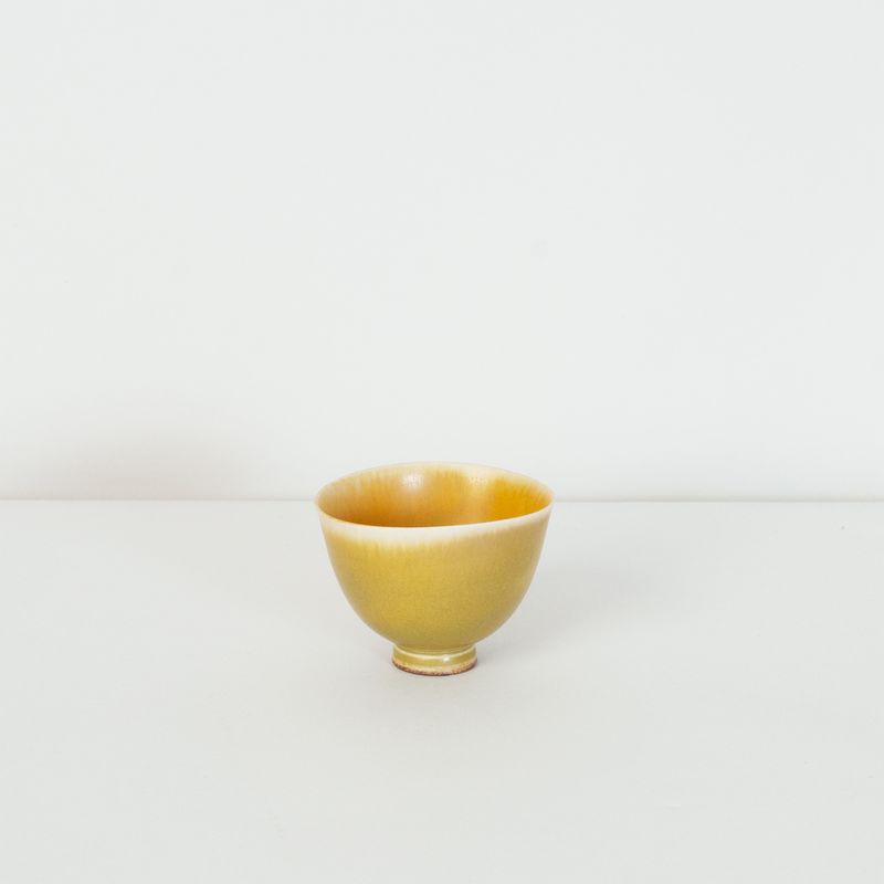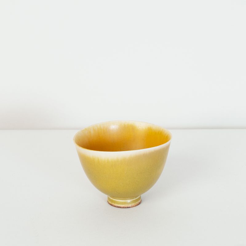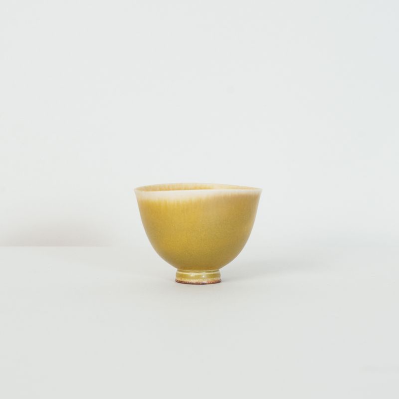 Miniature yellow bowl on foot thrown by Berndt Friberg