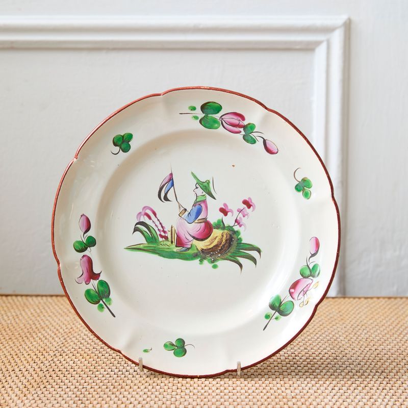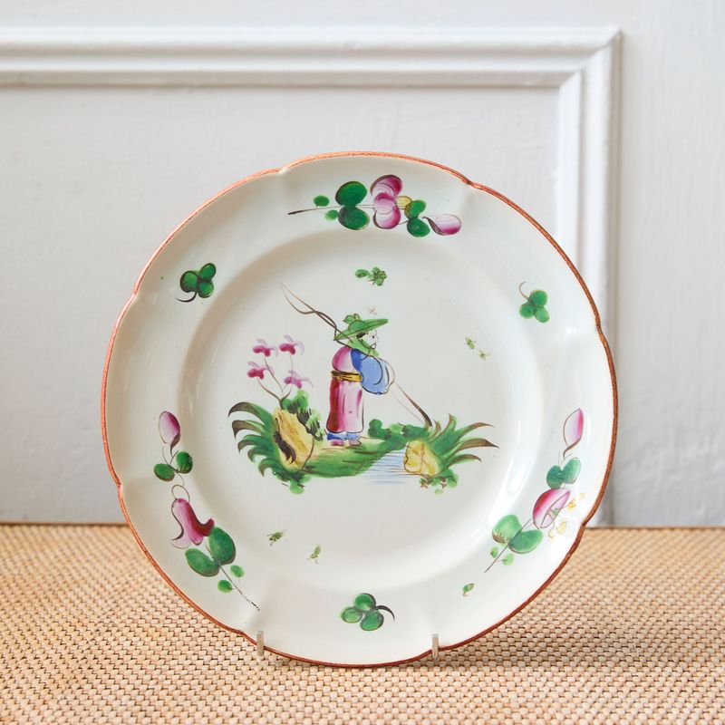 A set of four late 18th / early 19th century French faience hand-painted polychrome decorated Chinoiserie plates with scalloped rim from Les Islettes pottery. The price is for the set but they are available individually for £45 each.