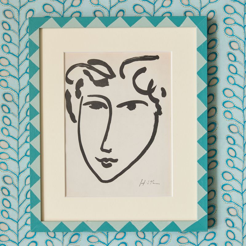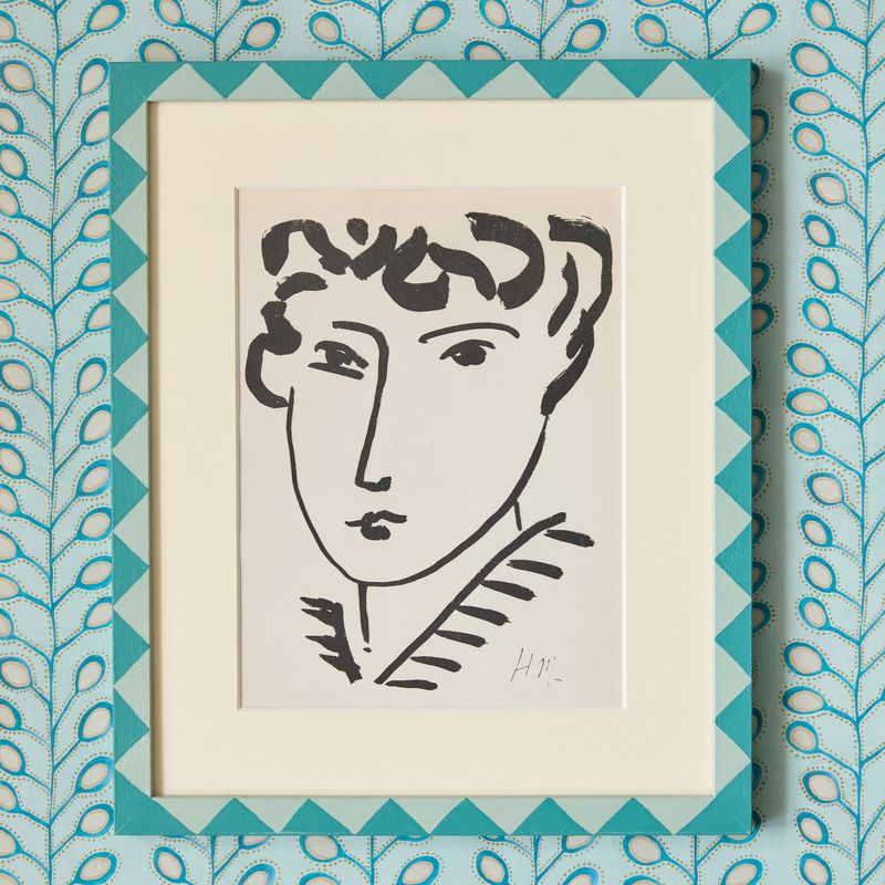 A set of three heliogravure prints of portrait heads of women after drawings by Henri Matisse published in Paris in the 1950s. They are mounted in hand-painted decorated frames with non-reflective glass. The price is for the set, or available individually for £385 each
