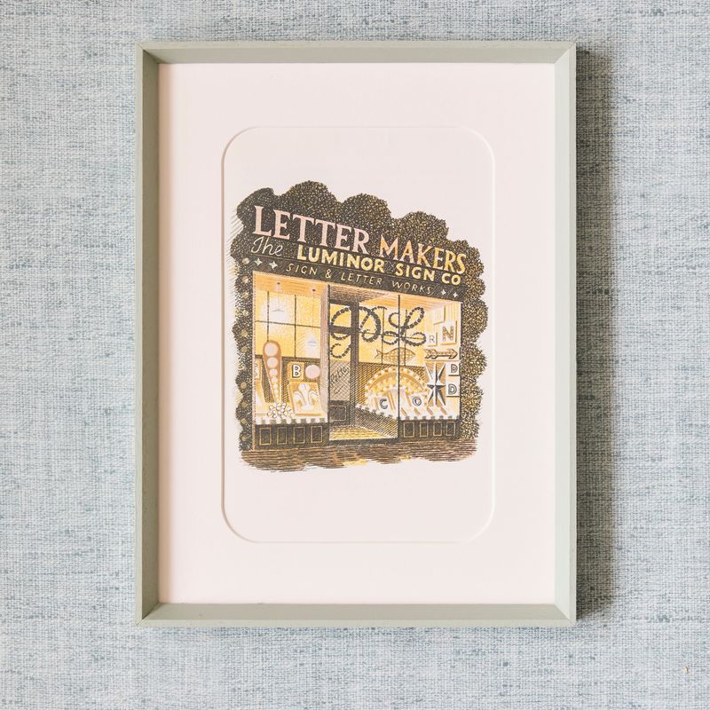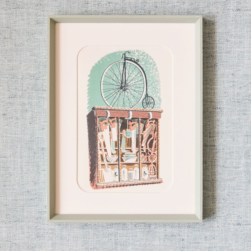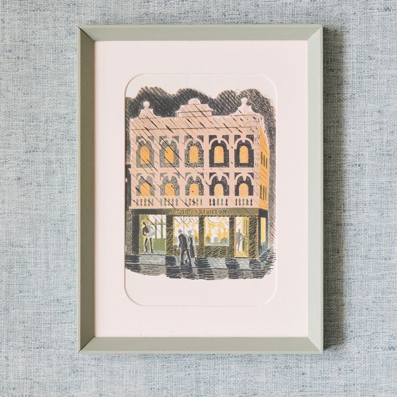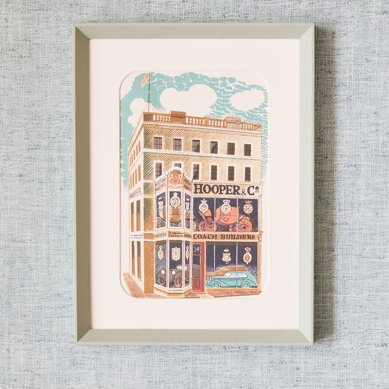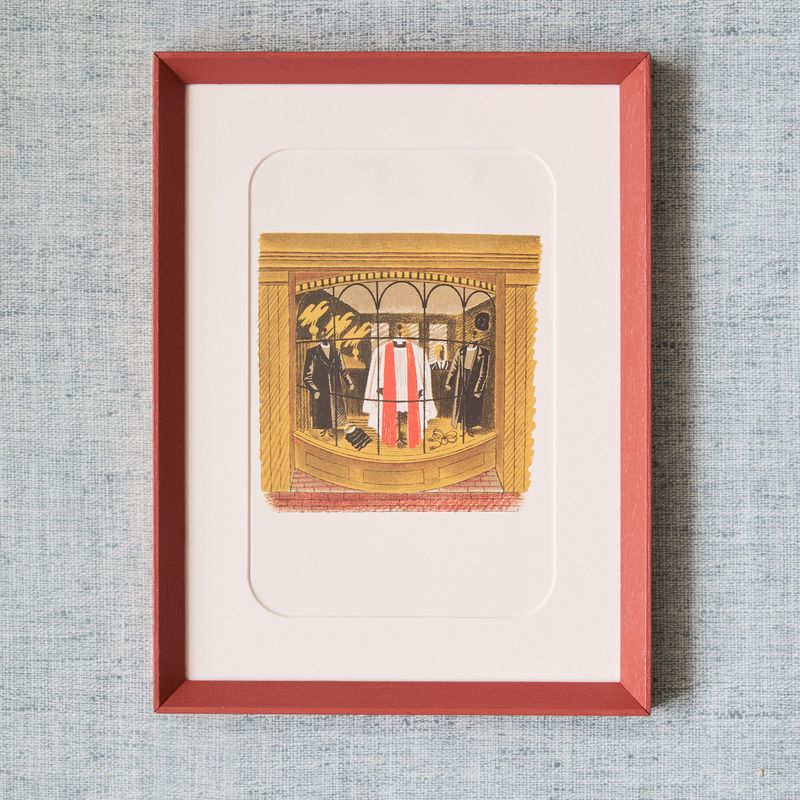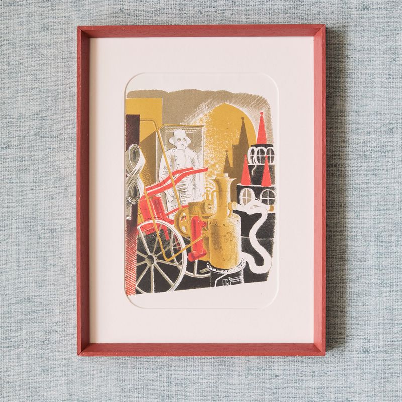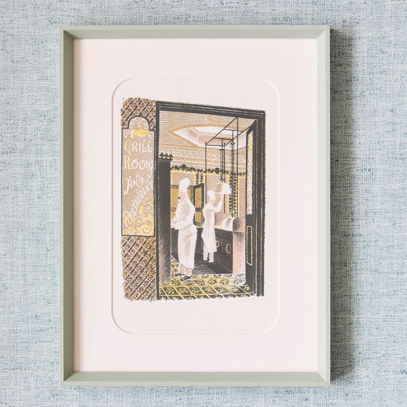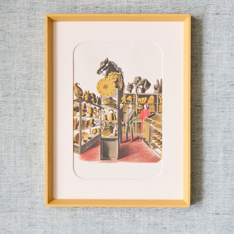 A set of twenty four colour lithographs which were created by Eric Ravilious (1903-1942) for High Street, a book of shops written by J M Richards and published by The Curwen Press for Country Life Books in 1938. From a later edition of the book, they are mounted and framed in a hand-painted sloped frame with non-reflective glass. The price is for the set, but they are available individually for £120 each with a discount applicable for multiples.