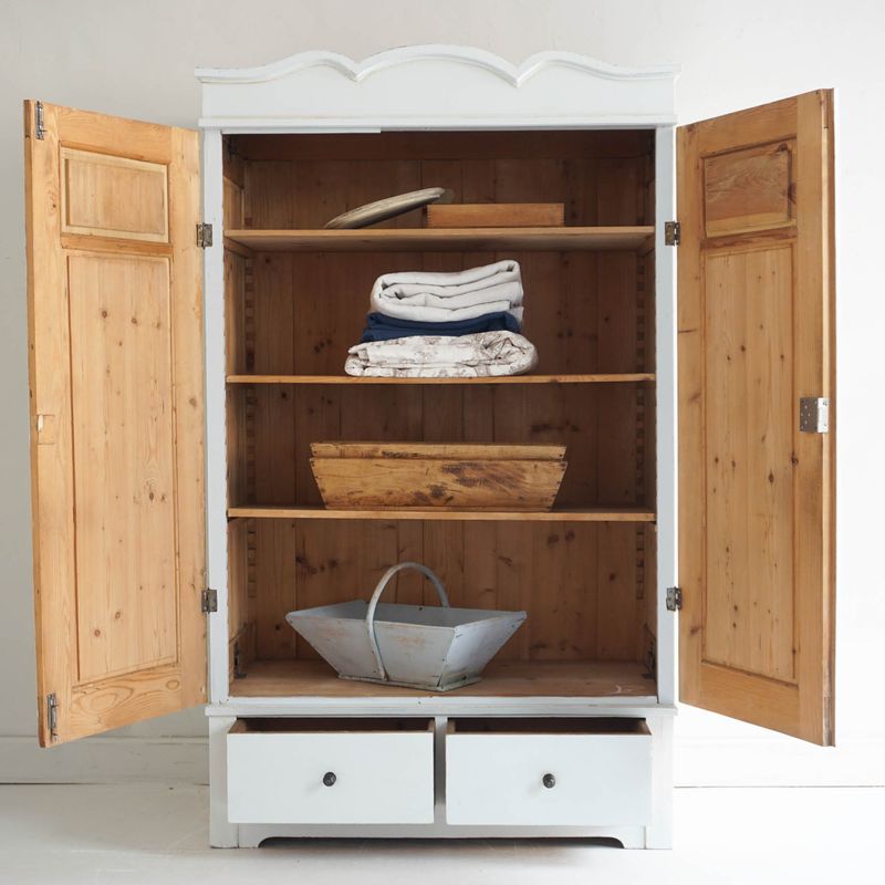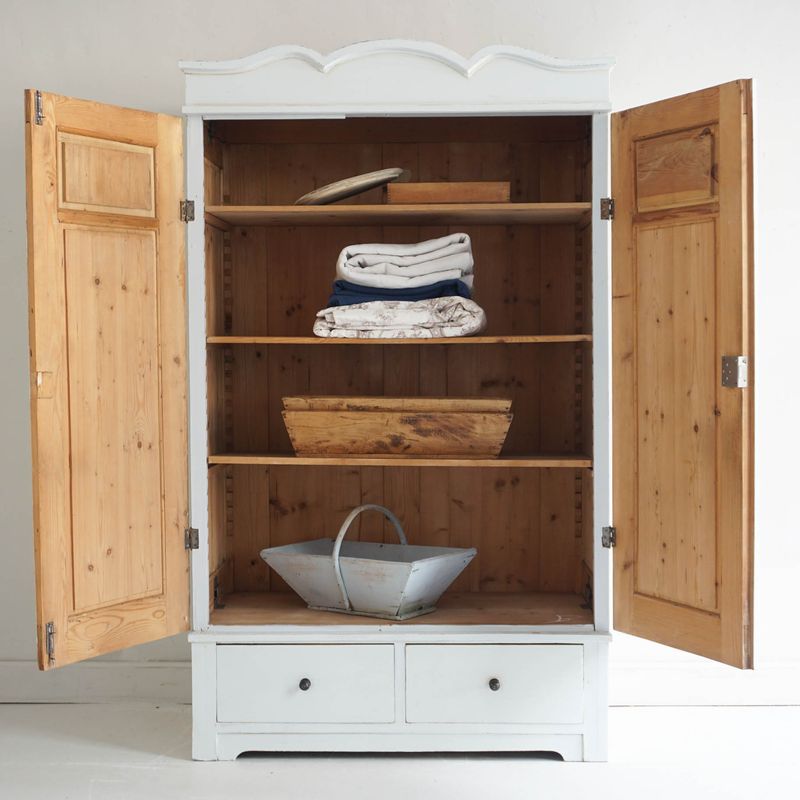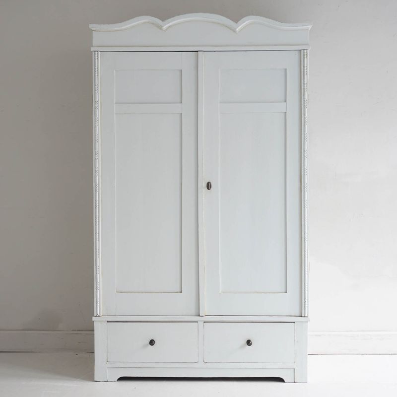 Antique Continental knockdown wardrobe recently refurbished in Rustoleum Chalk Paint (Library Grey) and lightly distressed. This piece fully dismantles for ease of transportation and access into awkward spaces. It is easy to assemble and then provides sturdy storage space. Fitted with a rail. Dimensions are to the largest external edges. Internal depth 46cm.