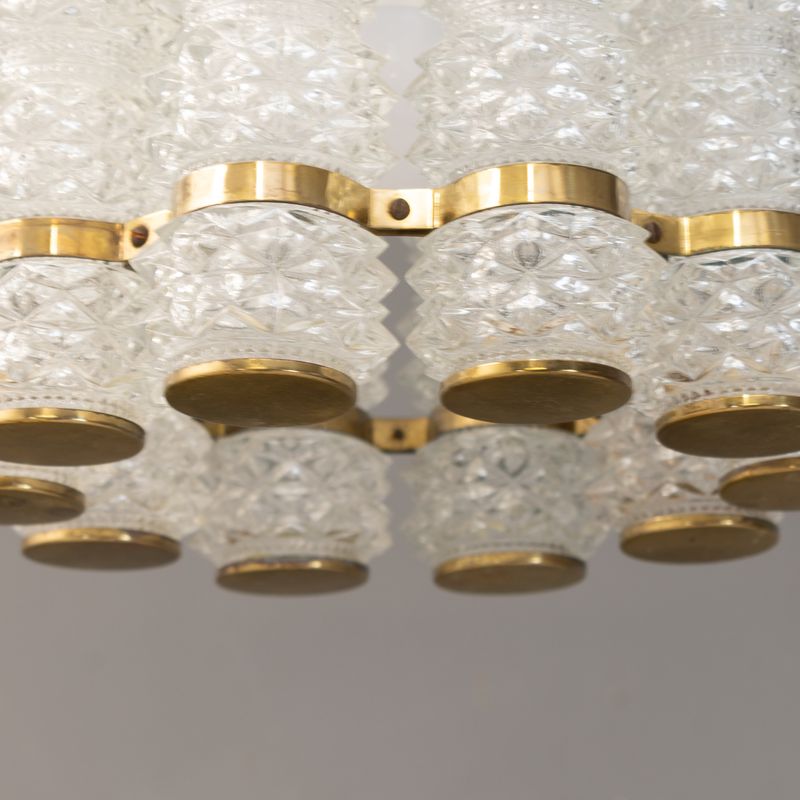 Crystal & Brass Pendant by Tyringe Konsthantverk. Glass produced by Orrefors. Rewired. Sweden circa 1960.