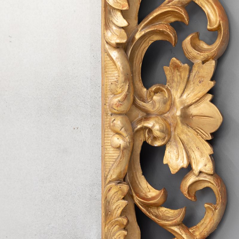 Gilded carved wood Florentine style French mirror with original mirror plate. Circa 1860