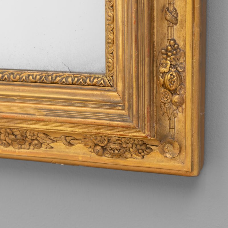 Gilded French overmantel with decorative detail to frame and original mirror plate. France circa 1860.
