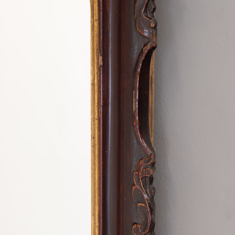 Early 20th century carved mirror with original lacquered finish and gilt slip. U.K 1900.