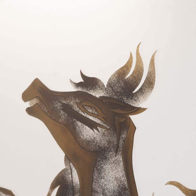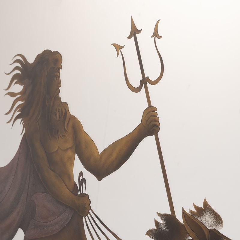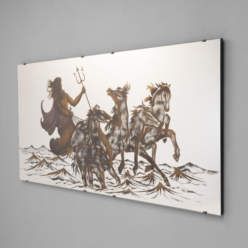 Large decorated mirror of Zeus and chariot. France circa 1960.