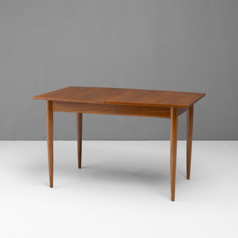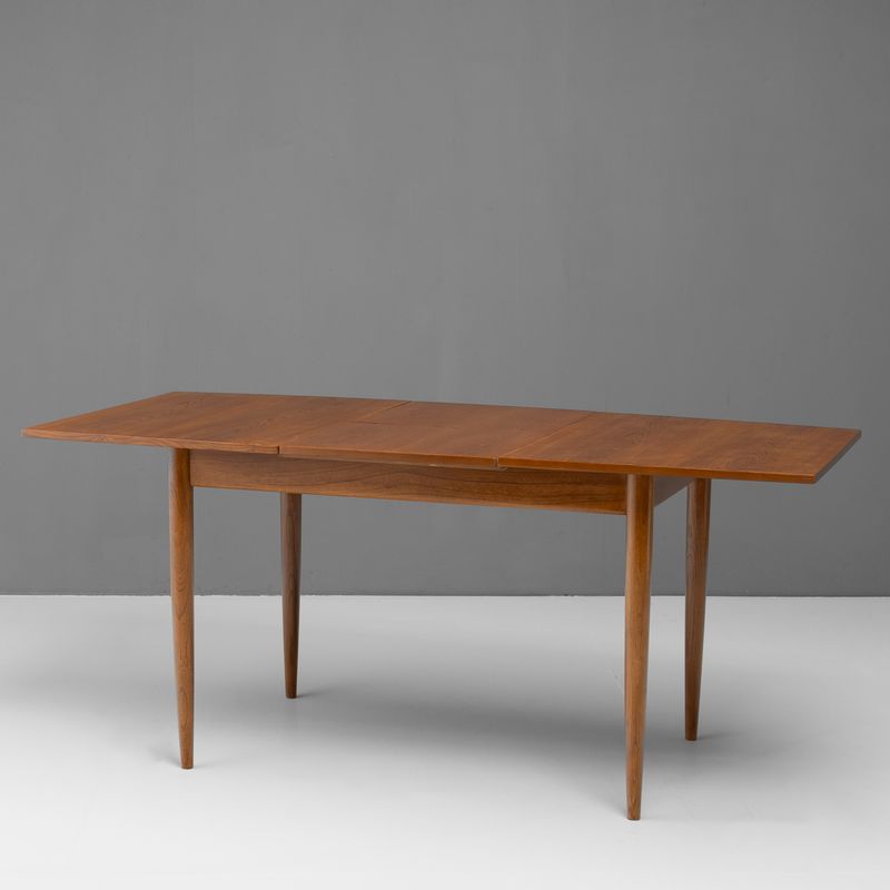 Mid-Century Teak veneered extending dining table. Re-finished, some areas of wear. U.K circa 1960.