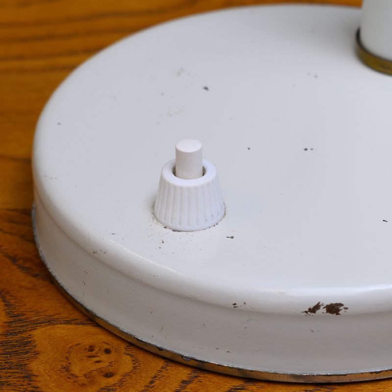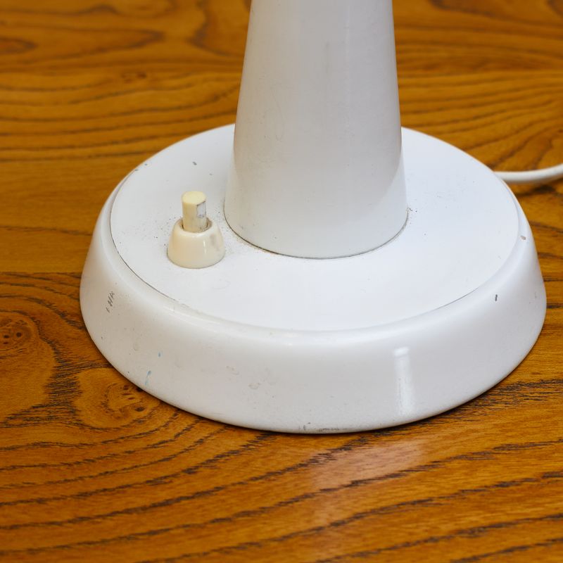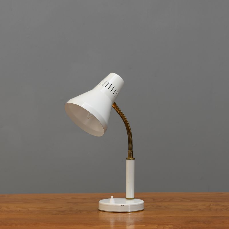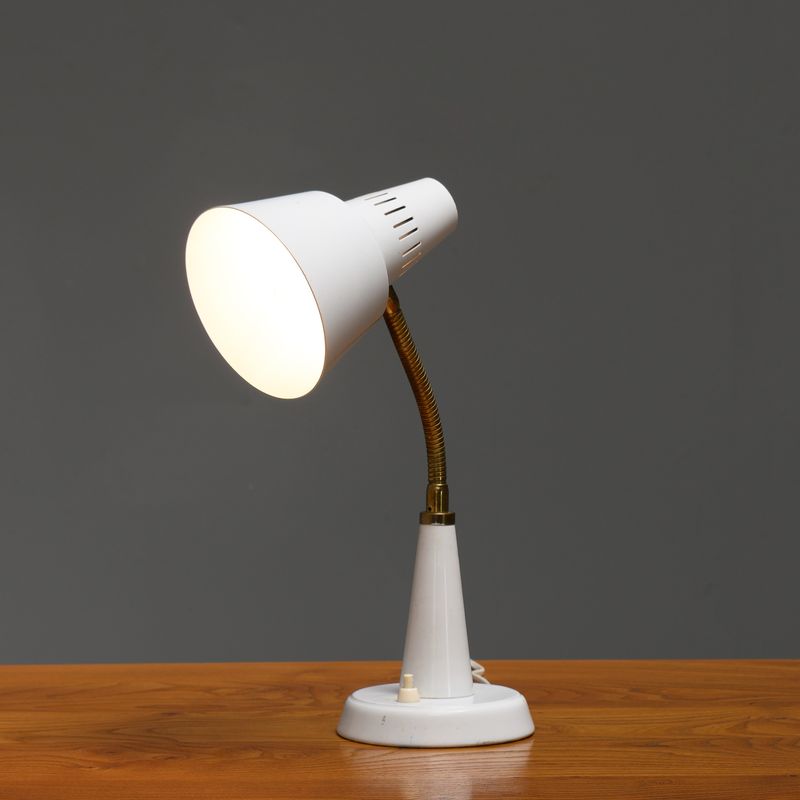 Near pair of goose neck table lamps in original cream finish. Re-wired and tested. Sweden circa 1960.