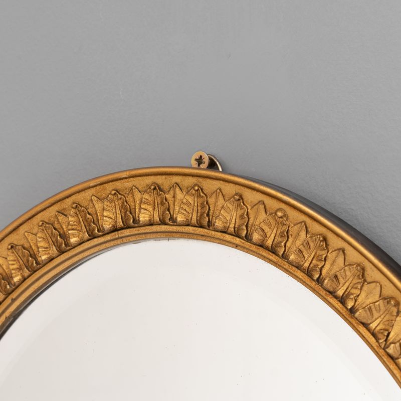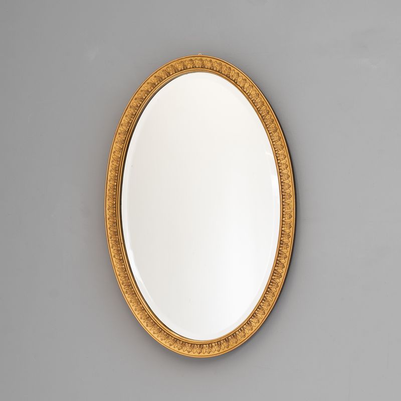 Oval mirror with gilded frame and original bevelled plate. U.K circa 1930.