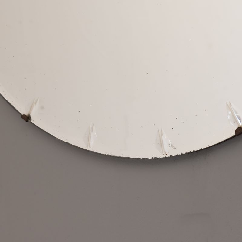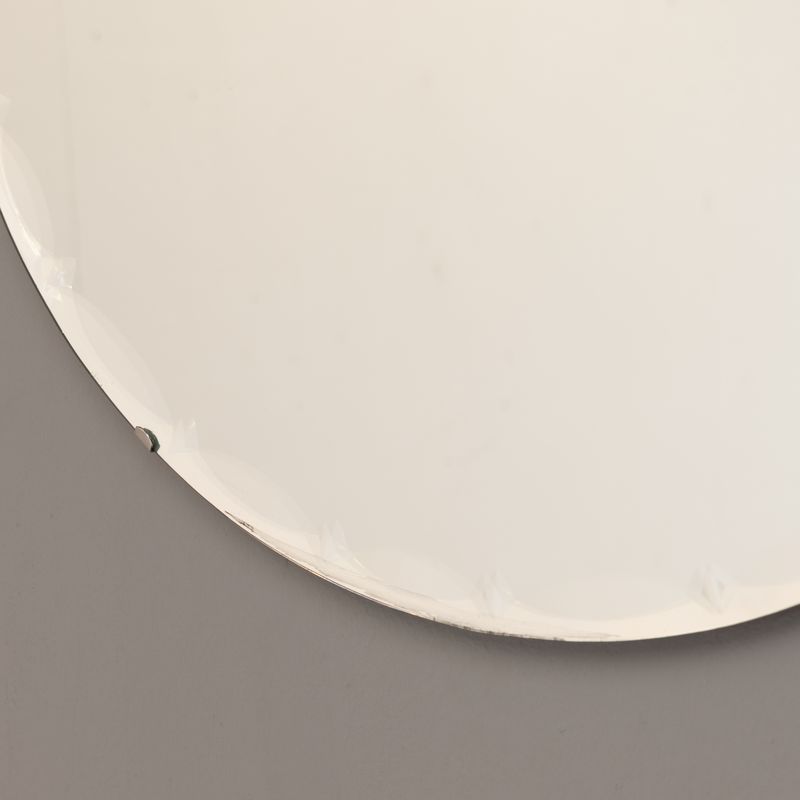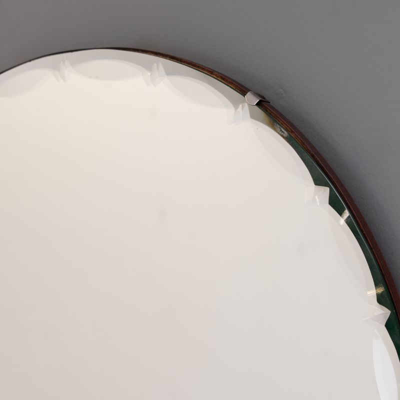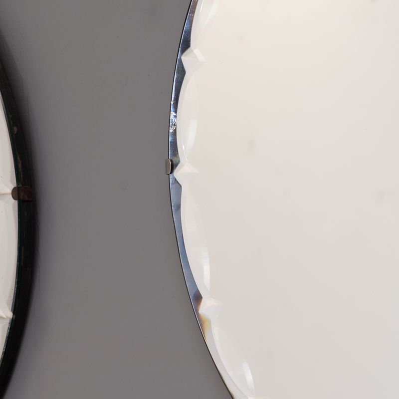 Pair of early 20th Century frameless circular mirrors with decorated edges. U.K circa 1920.