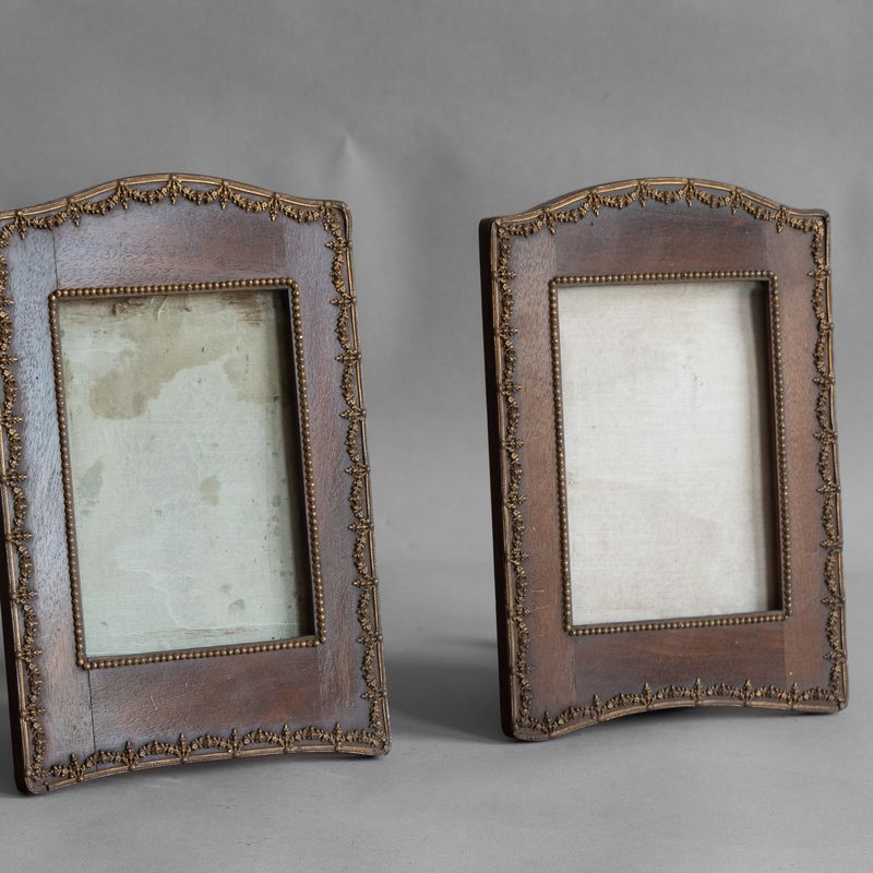 Pair of wooden frames with brass beaded edging. Circa 1930