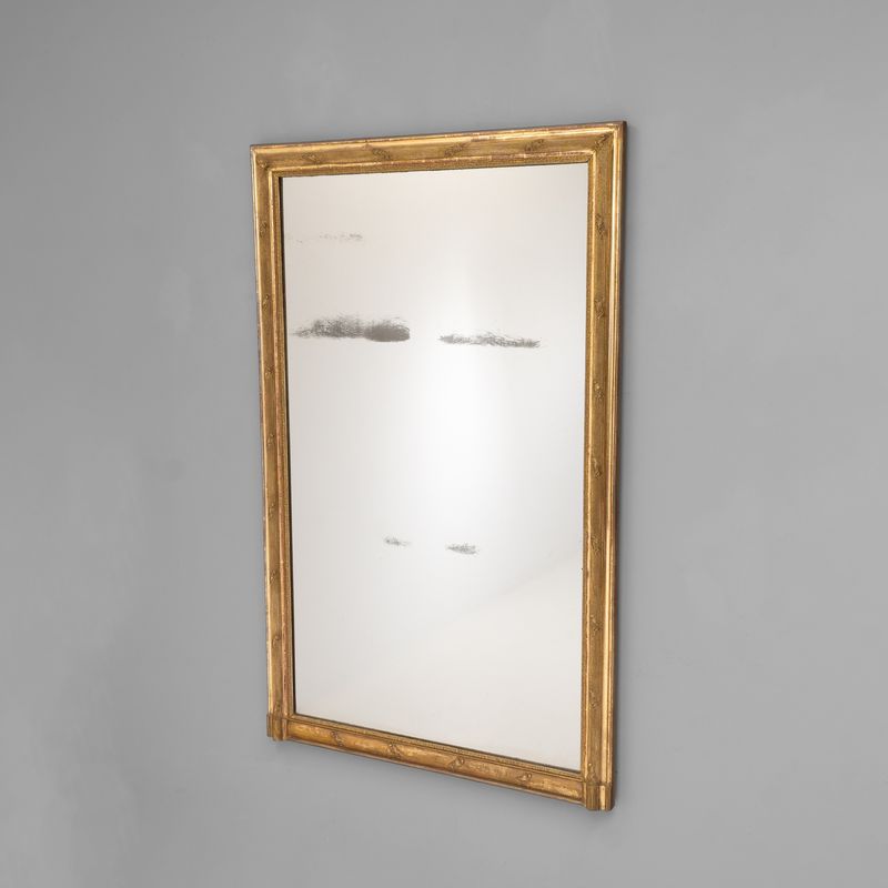 Overmantel mirror with reeded edges, ribbon decoration and original plate. France circa 1860.
