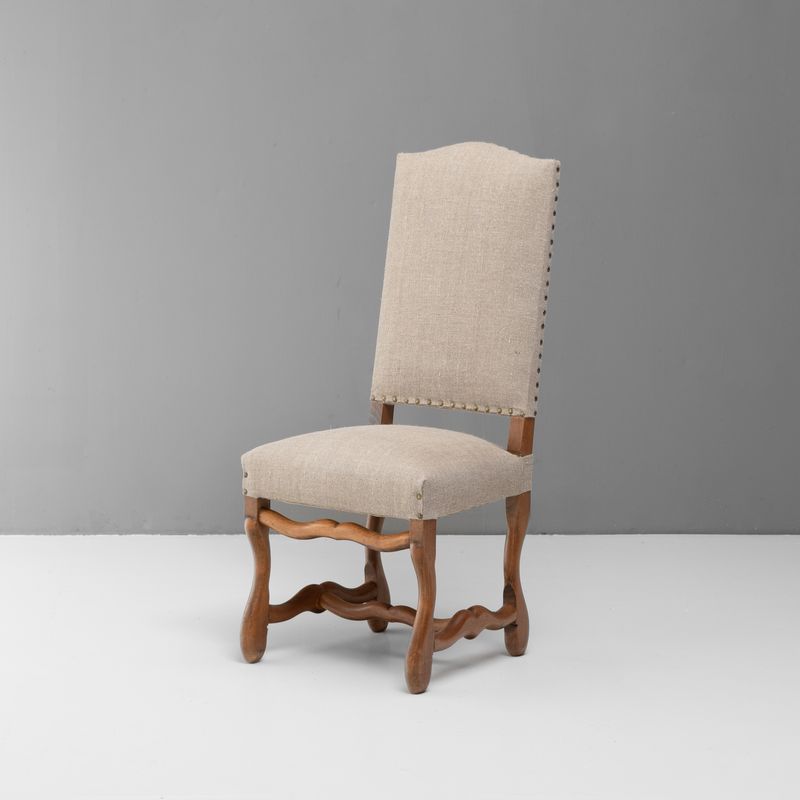 Set of six reupholstered oak framed Os de Mouton dining chairs. Circa 1950
