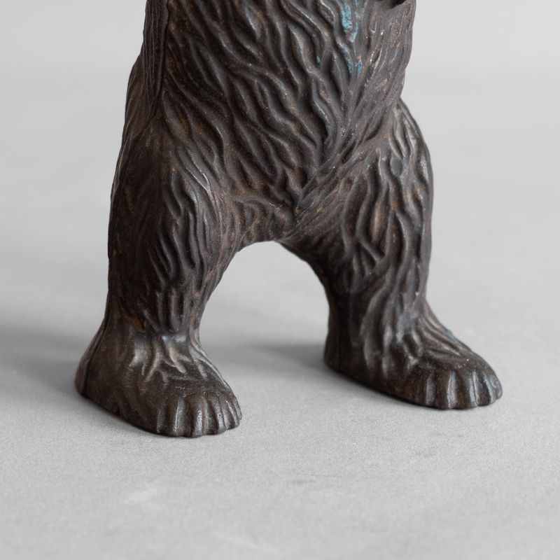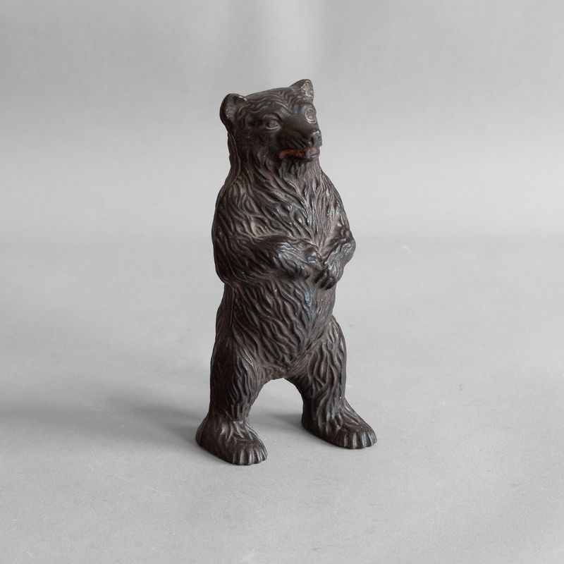 A late Victorian patinated cast iron standing bear money box, registered design by John Harper & Co. U.K circa 1900.