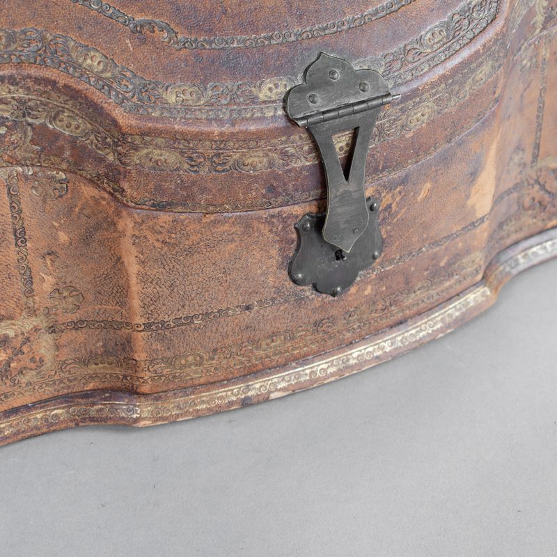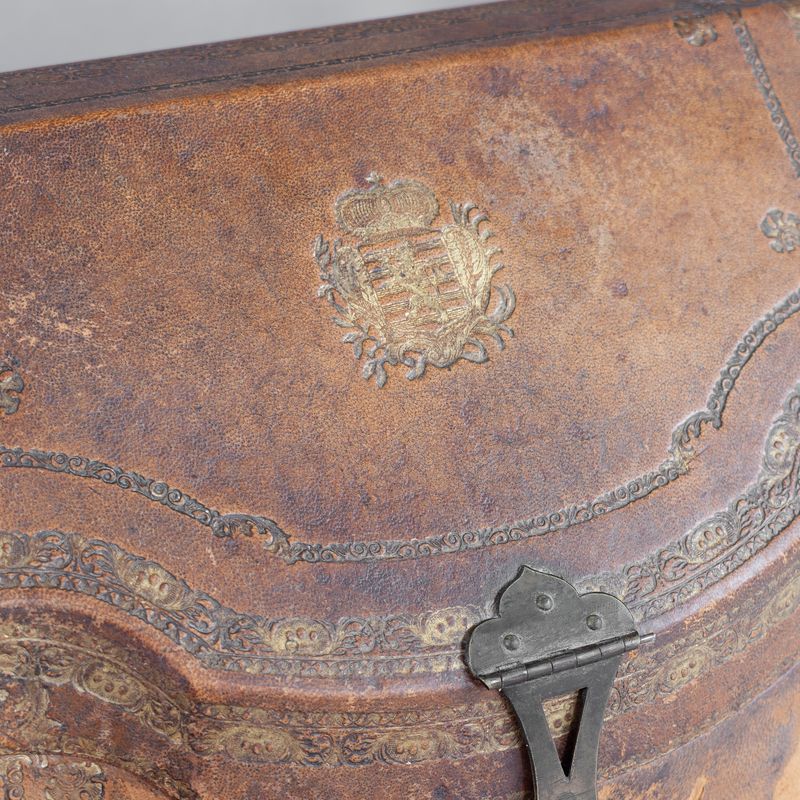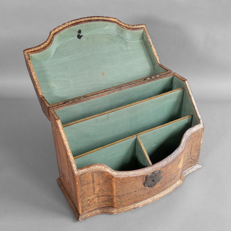 French leather bound stationery box with decorative gilding. Circa 1950.