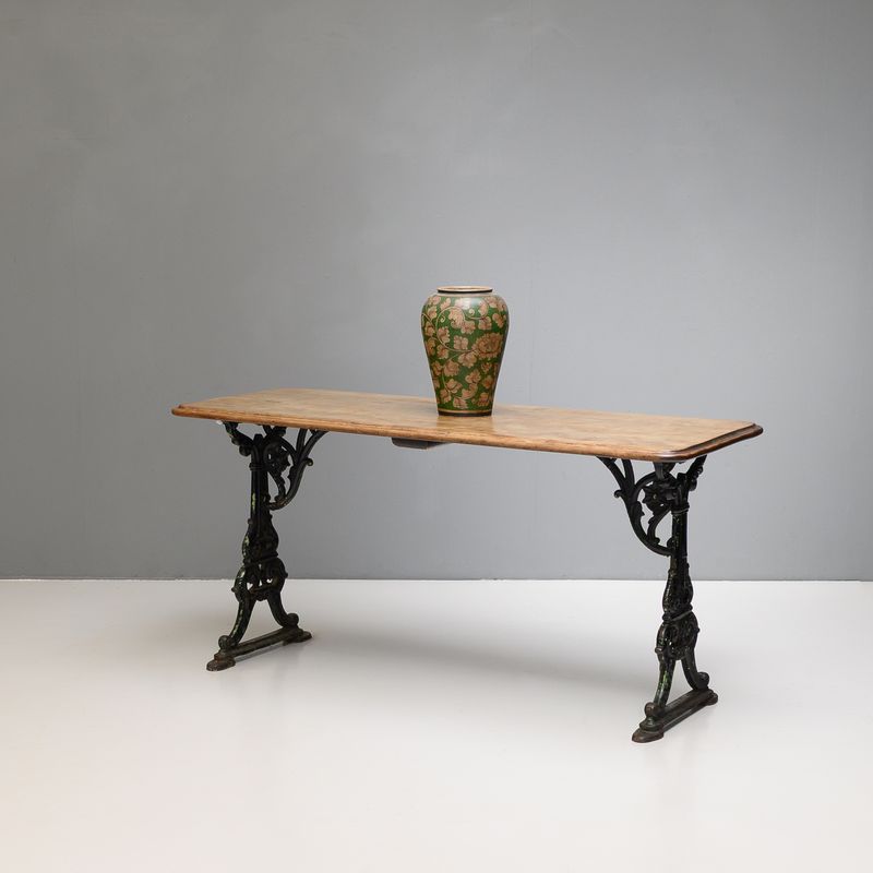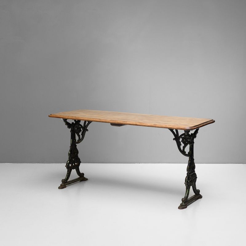 Mahogany top tavern table on cast iron ends. U.K circa 1870.