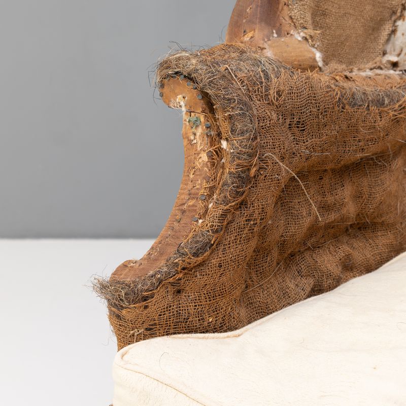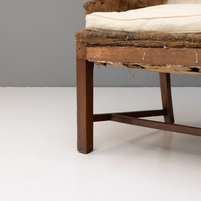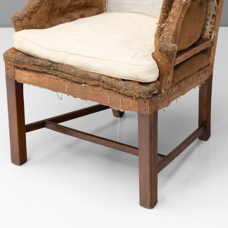 Wingback armchair on mahogany legs with H stretchers. Circa 1900.
