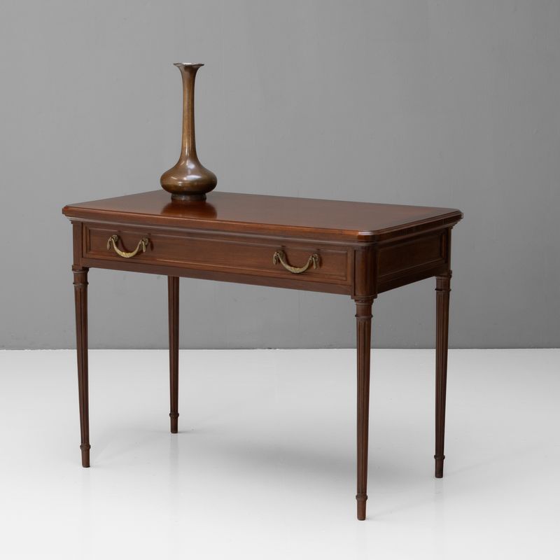 Single drawer French mahogany writing table. Circa 1900.