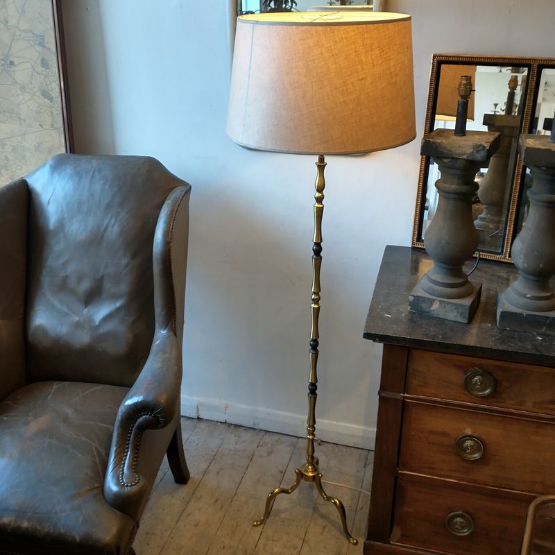 An elegant polished brass floor lamp with cabriole legs and bronzed section decoration. No issues sits well and nice & straight.
