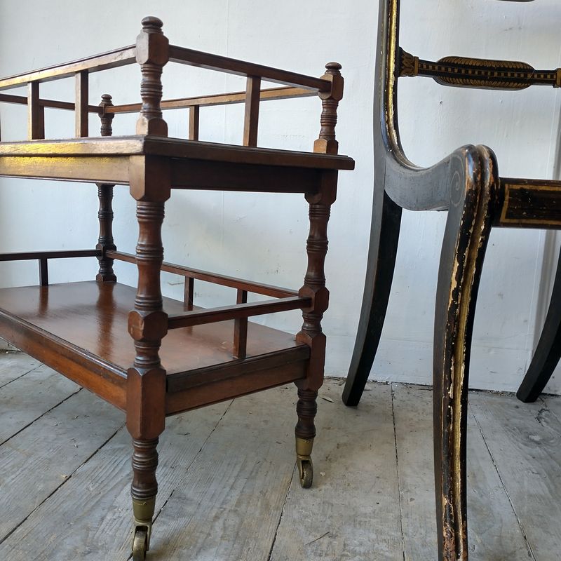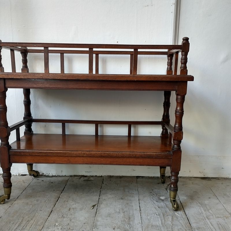 A very cute, well designed, impressive quality mini wot not side table in solid walnut. English 1890.