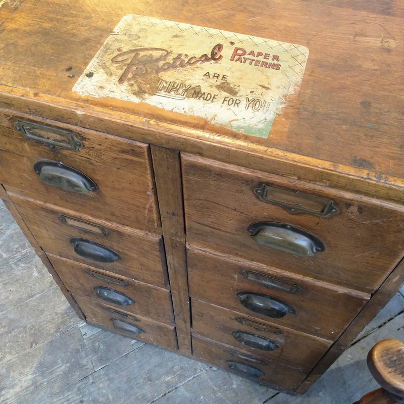 Early C20th oak. Original condition complete with old advertising labels. Shop worn but nice condition.