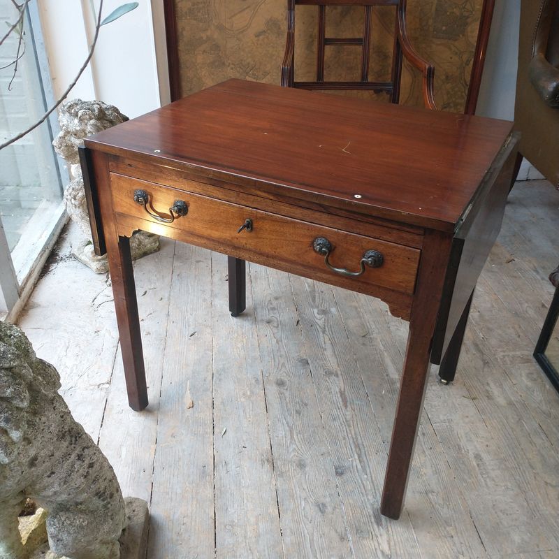 A superb early example dating to 1760. Strong square design with bold square cut tall chamfered legs with movable parts as normal plus pull up wings all on original squat castors. Good hight to work at. A rarity in the trade.