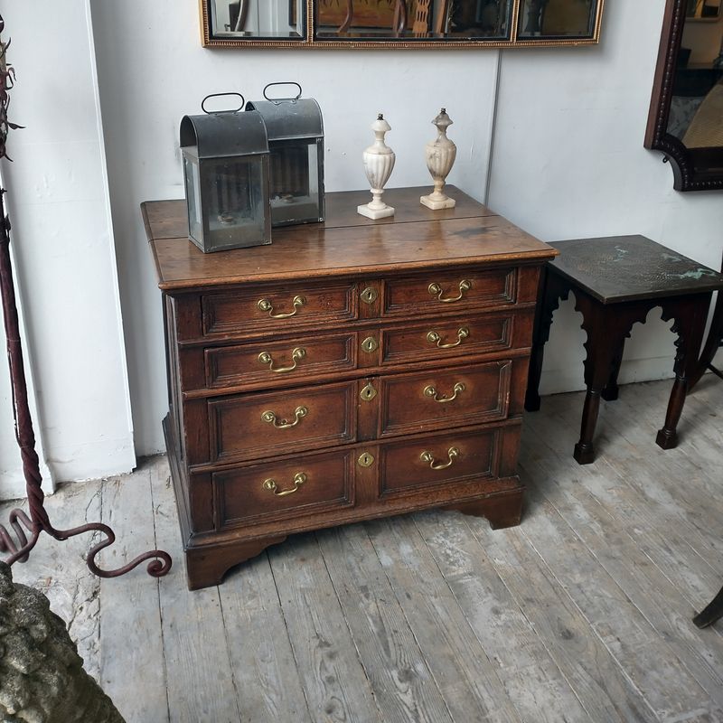 A venerable old oak chest dating to late C17th come early C18th. Heavy dense cottage made provincial construction with panel framed drawers. In very good order.