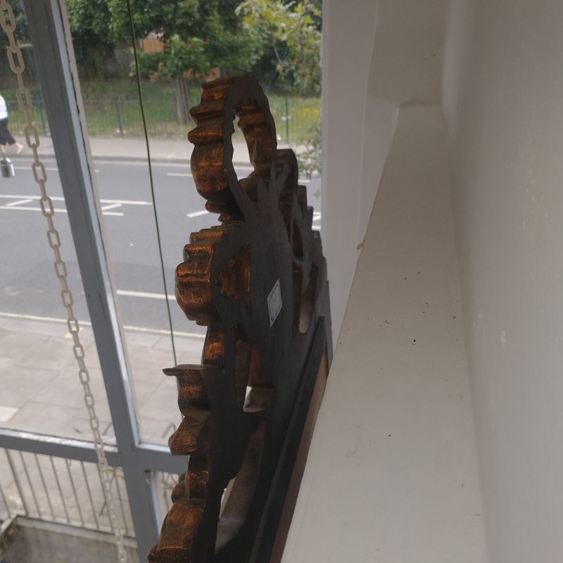 Received from a house clearance this mirror is used contemporary. Late C20th. Wood or composite wood (it's reasonably light for its size). Perfect condition. Would work well in a period or contemporary setting (has something of the mid century about it).