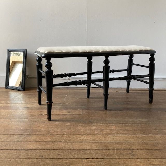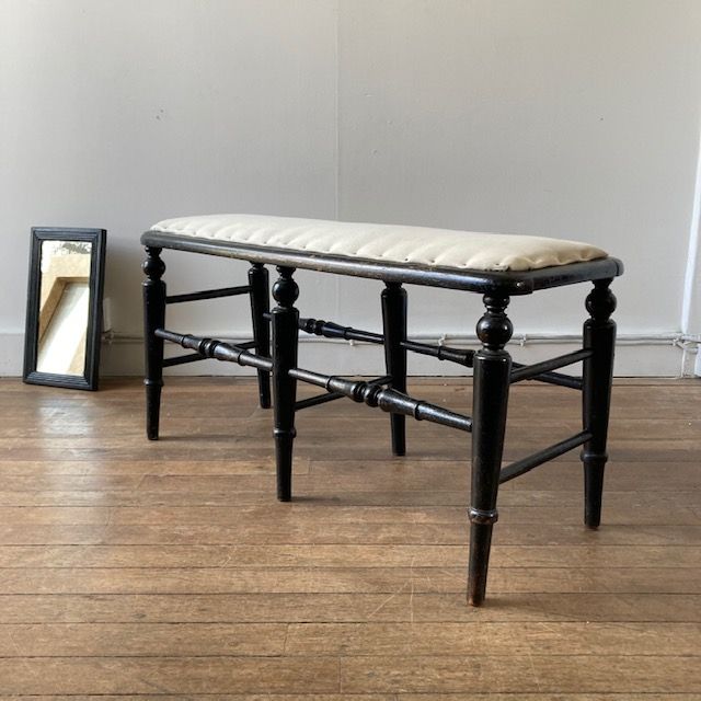 Pretty little Ebonised Stool with new upholstery in calico. C. 1900 English.