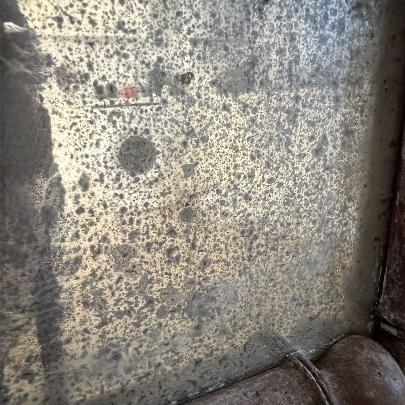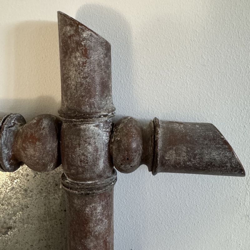 19th century French faux bamboo mirror with a slightly white washed frame and beautifully distressed grey mirror plate