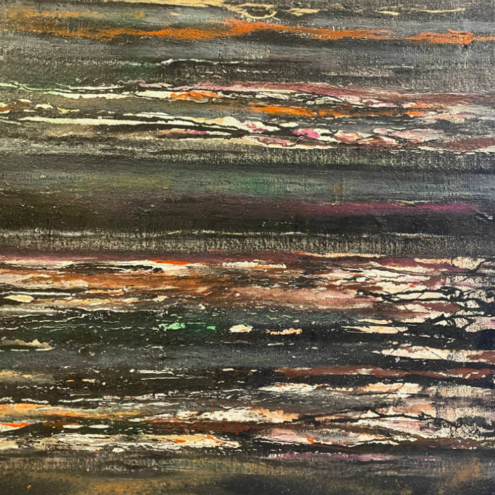 A French oil on canvas by Jean Pierre Guillon called "Abstraction". The linear design resembles sunlight reflection on water.