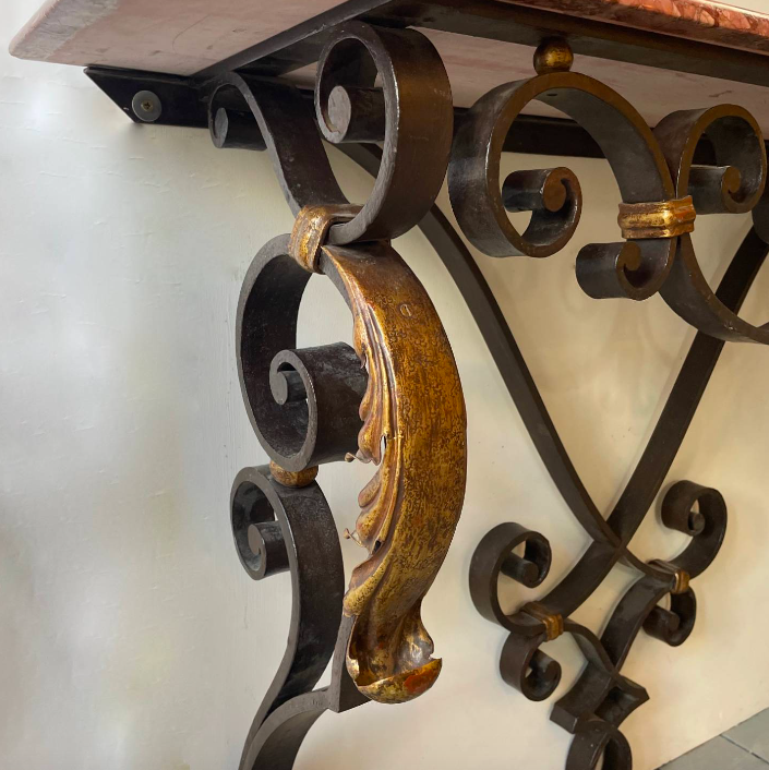 A French wrought iron console table with Brocatelle marble top c.1940