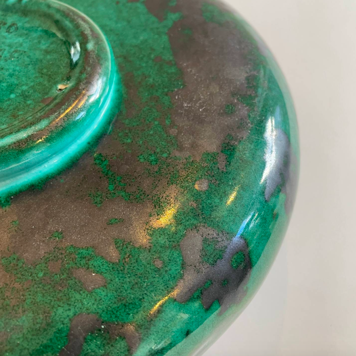 A French mid century green & hematite black glazed vase.