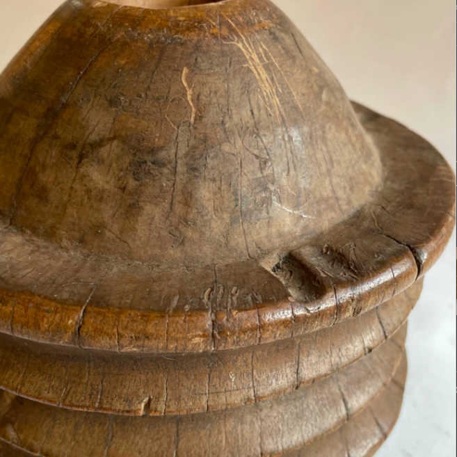 A matched pair of 19th century African pulleys. Their look is sculptural but their woking life has left them with a tactile smoothness .