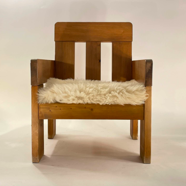 A pair of French 1970s sturdy solid pine `cube` armchairs.