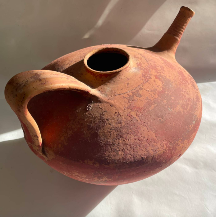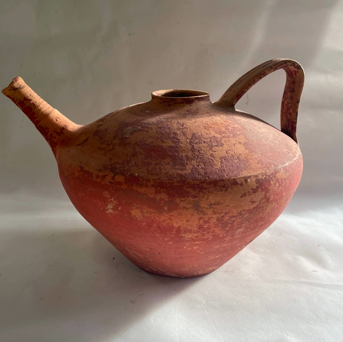 A pair of French terracotta water bearing jugs from the South West of France. These rare antique vessels are known as "pegarras". Very sculptural & decorative.