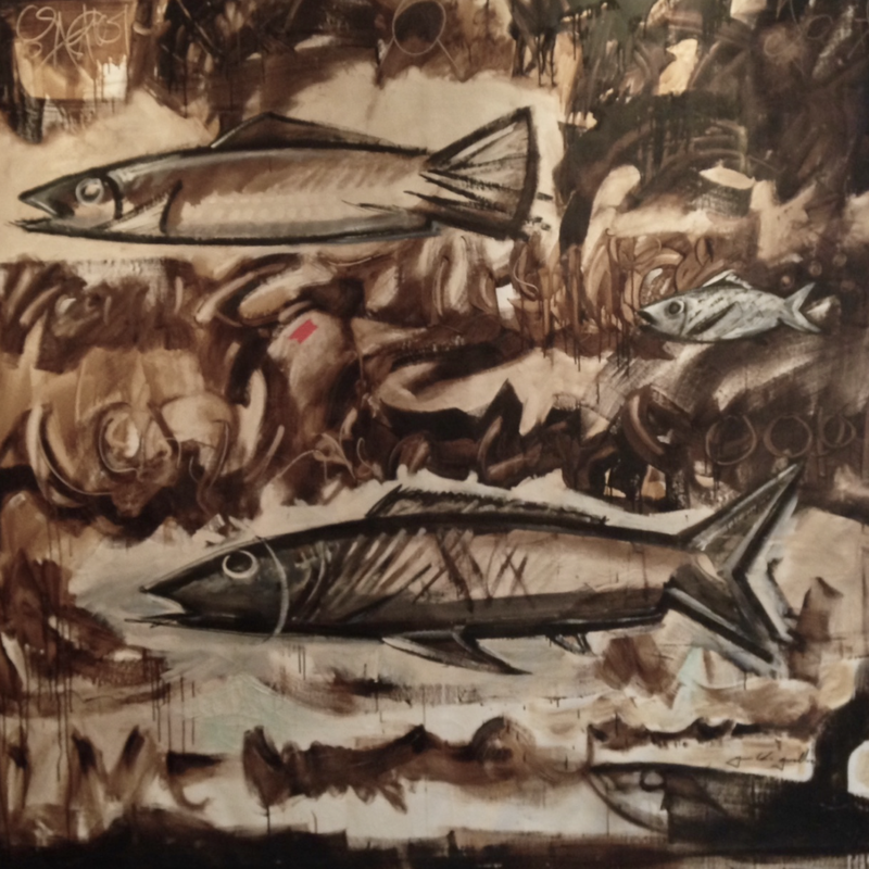 `Les Poissons dans la Mer d`Iroise` Large OIl on Canvas