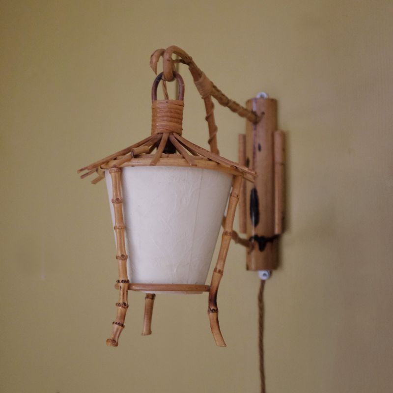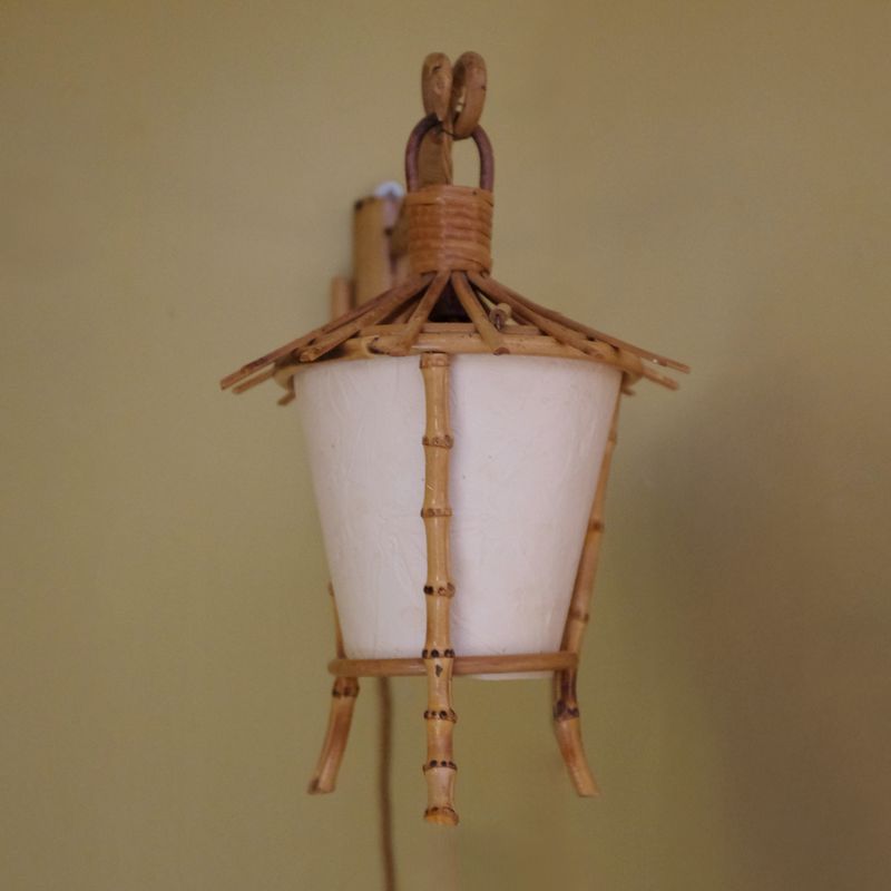 Charming cane wall light with original card shade