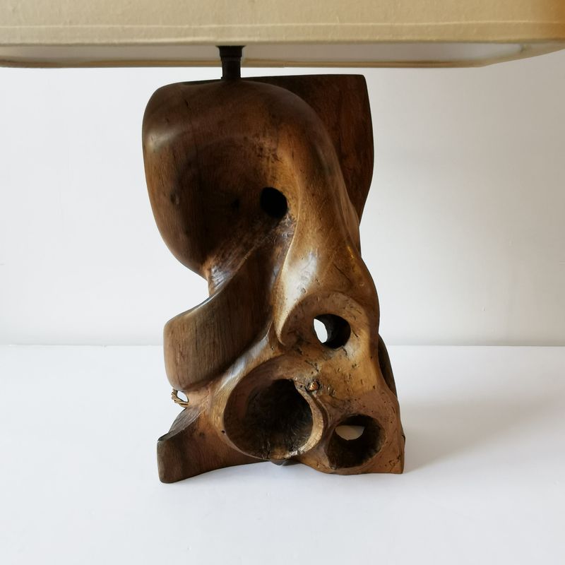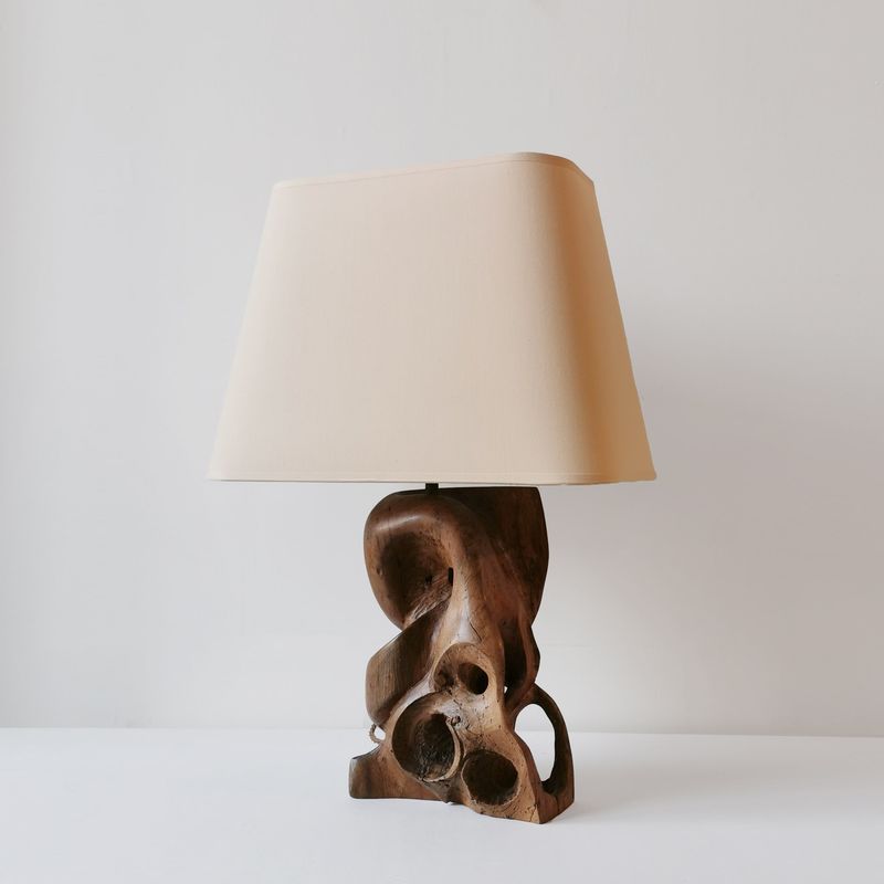 A Carved Wood Table Lamp From Quindry Availability: SOLD Hand carved wooden table lamp with eye detail. Rewired & PAT-certified, bespoke lampshade France, c.1950 W.20 x H.59.5 x D.10cm W.8 x H.23½ x D.4in View item on dealer's website › Contact Dealer Your name Your email Your phone number Subject I consent to the use of my data as per the Privacy Policy Send Message Share Tweet