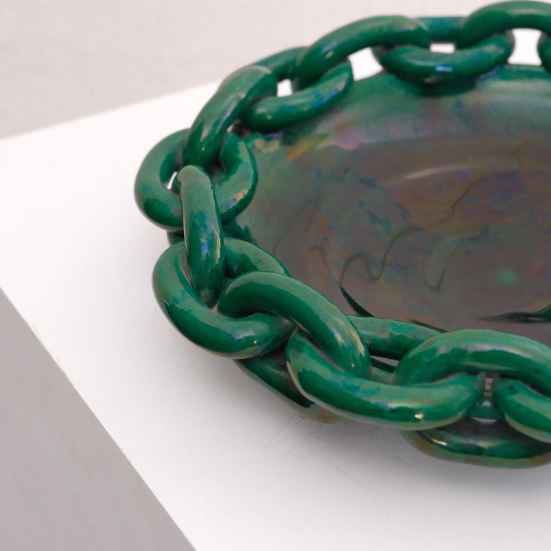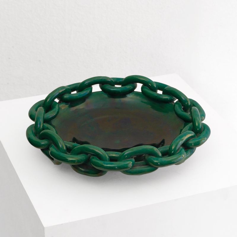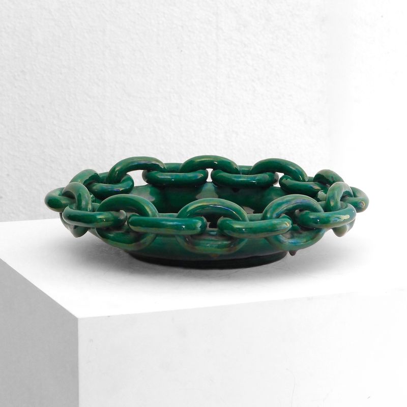 A Green Chain Ceramic Dish From Quindry Availability: In Stock Price: £990.00 Large green ceramic dish with sculptural chain edge France c.1940 Diam.35 x H.9cm Diam.13¾ x H.3½in View item on dealer's website › Contact Dealer Your name Your email Your phone number Subject I consent to the use of my data as per the Privacy Policy Send Message Share Tweet