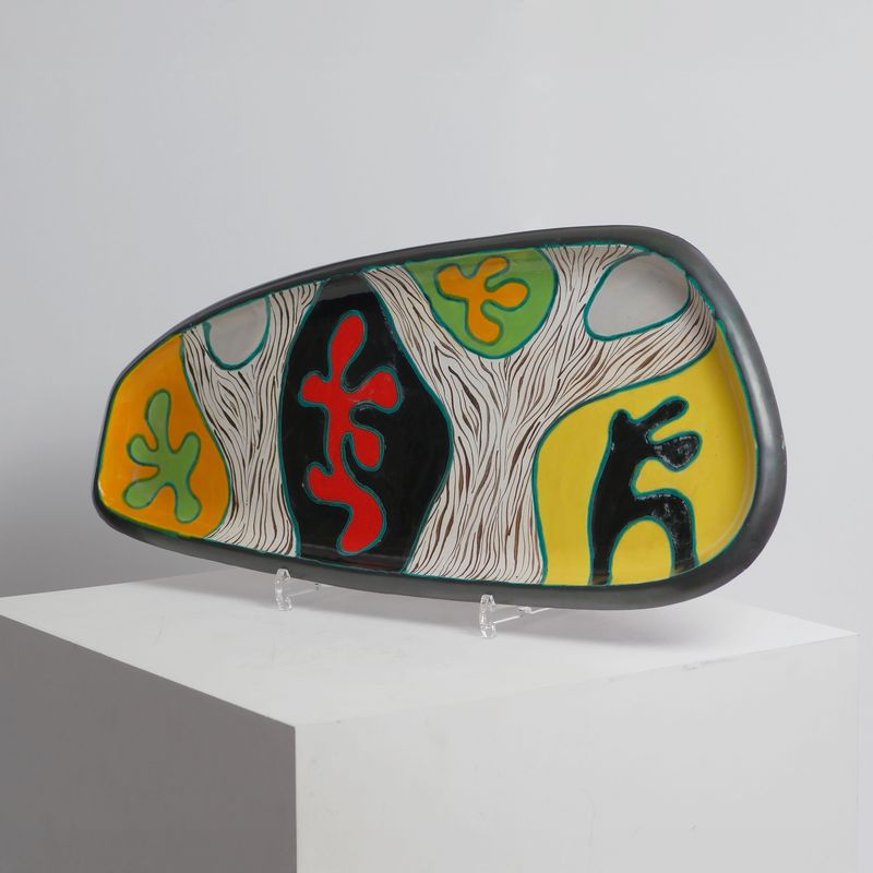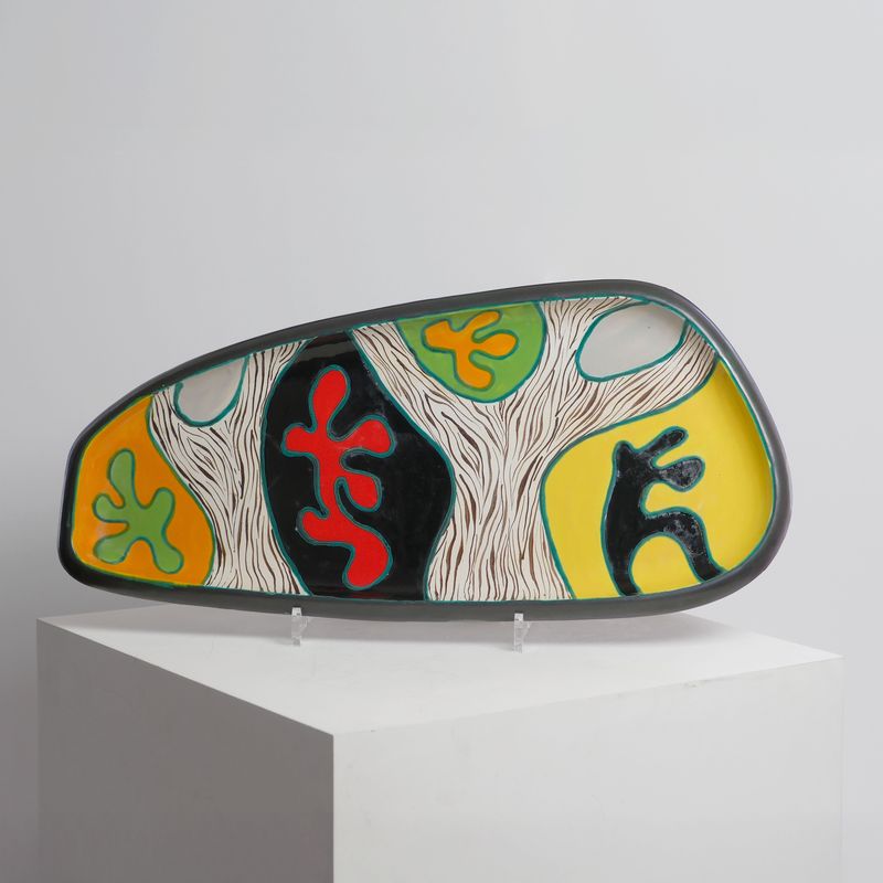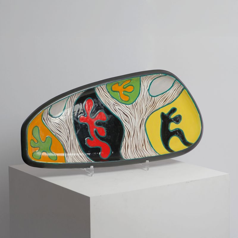 Wonderful free-form, large ceramic dish with Matisse-inspired décor.