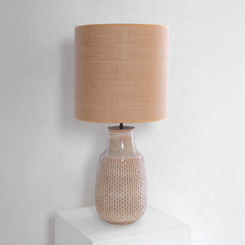 Large, textured pottery table lamp