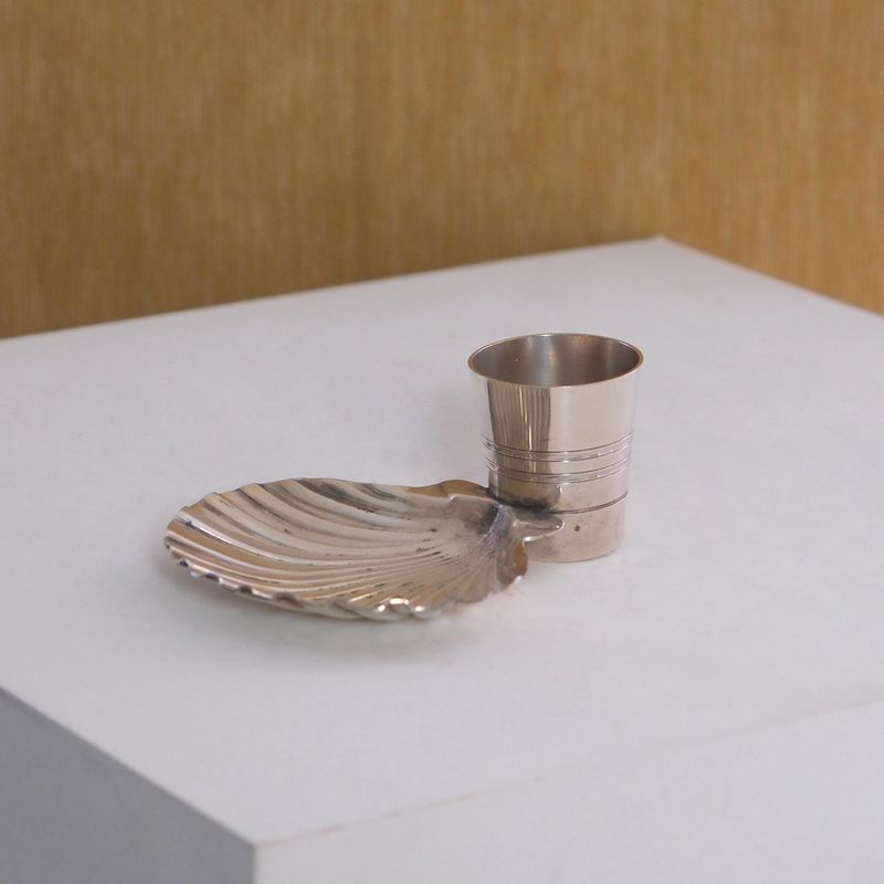 Silver-plated holder in the shape of a scallop