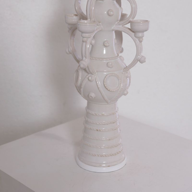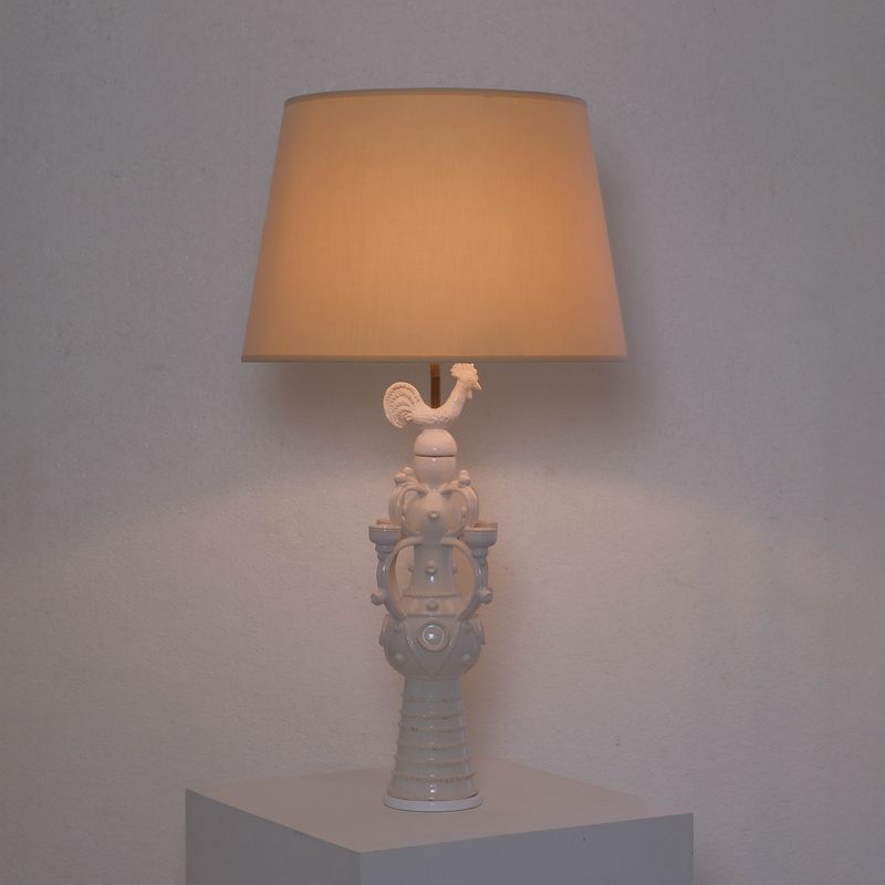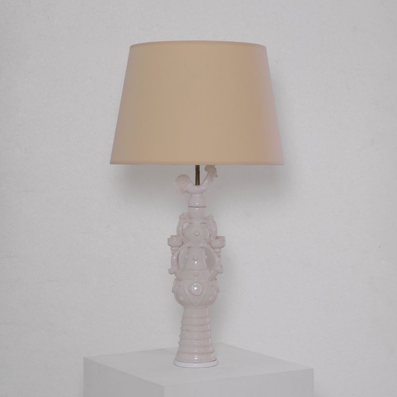 Large ceramic table lamp by Emile Tessier (1887-1971) for Faïenceries d'Art de Malicorne in the north-west part of France. A design based on seventeenth-eighteenth century folk ceramics.
