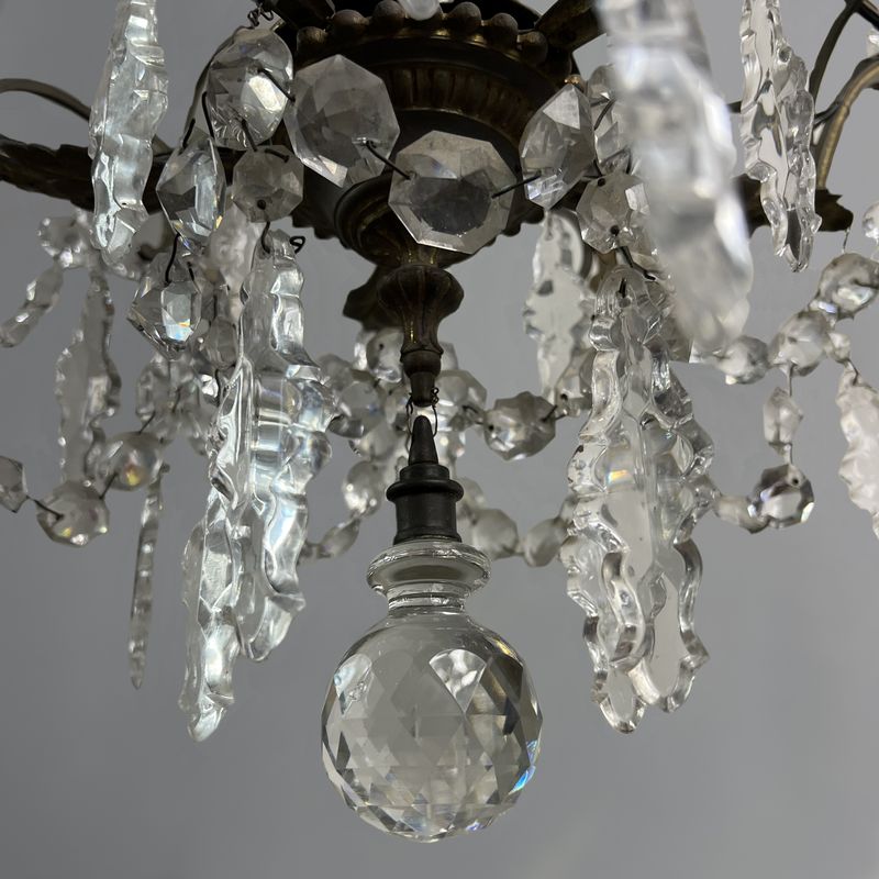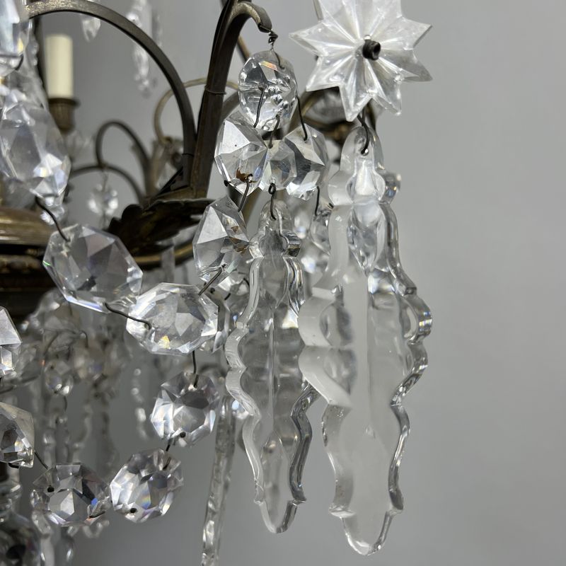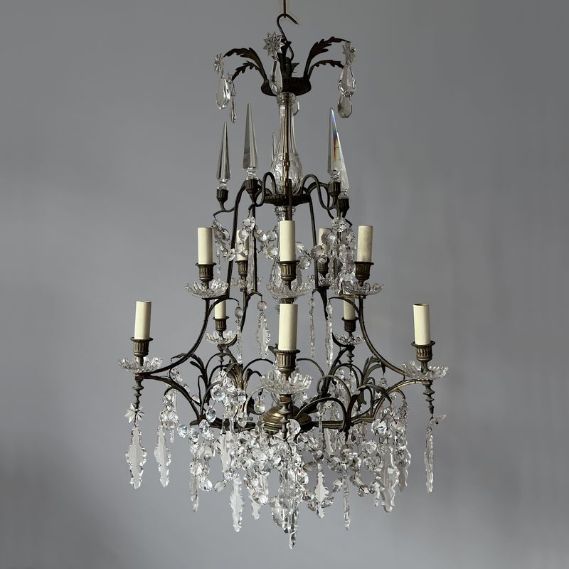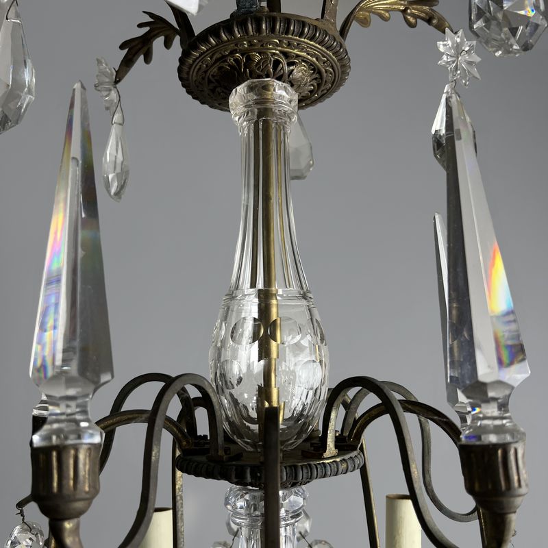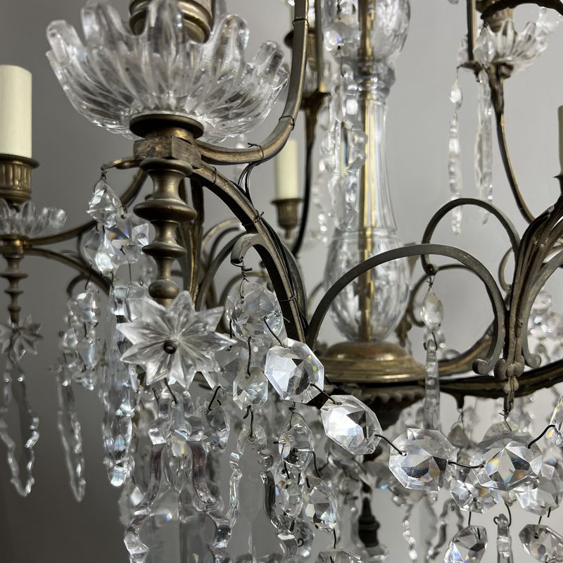 A Large French Baccarat Style Bronze Framed Chandelier