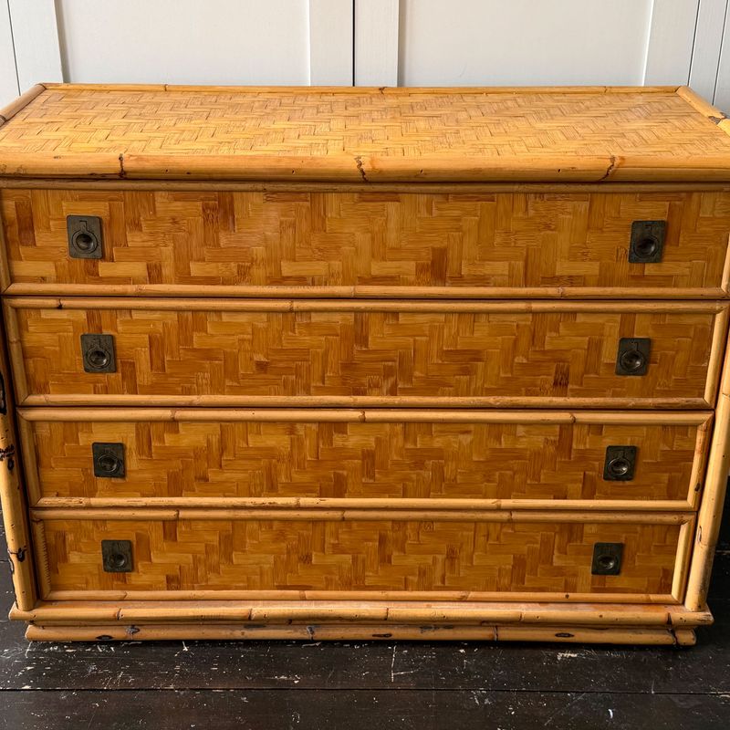 A 1960's Italian Woven Bamboo Chest of Drawers with Brass Handles
