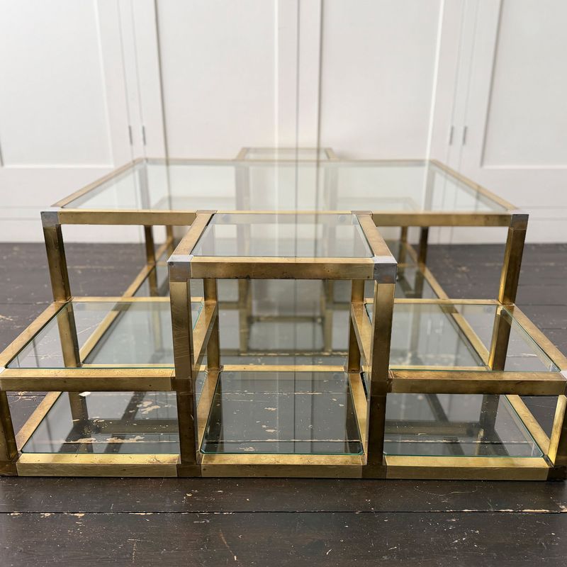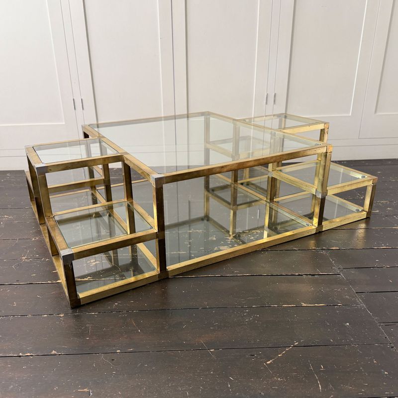 A 1970's Italian Multi-Tiered Brass & Glass Coffee Table