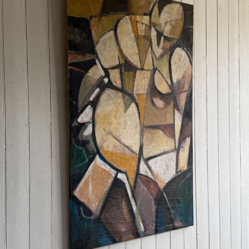 A large scale abstract nude in the Post Cubist style painted in warm brown tones.