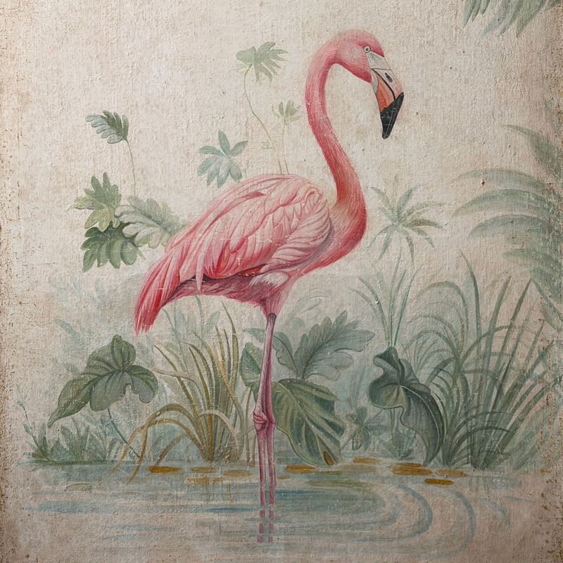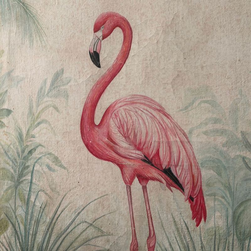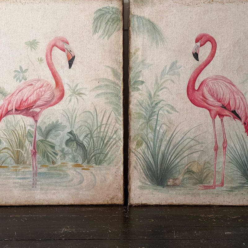A Pair of Large Italian Oil on Gesso Flamingo Paintings